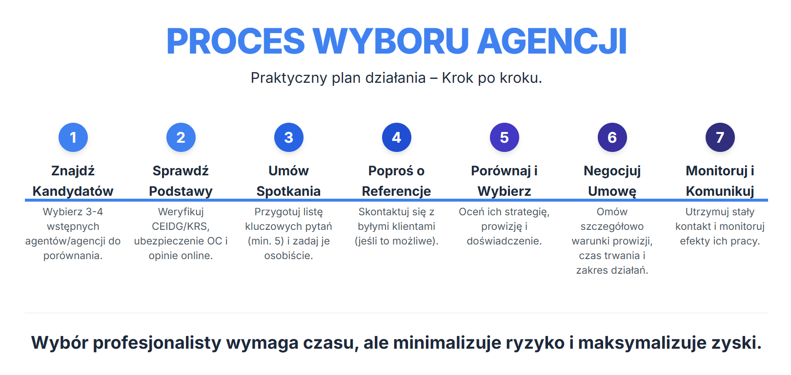 Wybierz tego, kto: ✅ Ma udokumentowane sukcesy w TWOJEJ okolicy ✅ Przedstawił konkretny, szczegółowy plan marketingowy ✅ Ma wysoką sumę ubezpieczenia OC ✅ Operuje twardymi danymi, nie obietnicami ✅ Jest transparentny co do kosztów i strategii ✅ Czujesz, że możesz mu zaufać – bo będziecie współpracować miesiącami